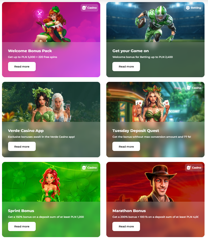 Verde Casino rozumie, że skuteczna strategia zachęcania graczy to bogaty wybór bonusów i promocji. Dzięki różnorodnym ofertom kasyno przyciąga zarówno nowych, jak i stałych graczy, oferując im dodatkowe korzyści i motywacje do dalszej aktywności.